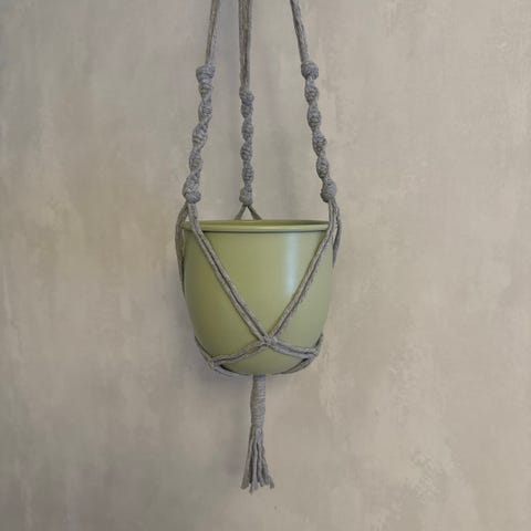 2kpl luonnonvalkoisia makramee amppeleita. Ruukku ei sis hintaan. Pituus ilman ruukkua noin 85cm.