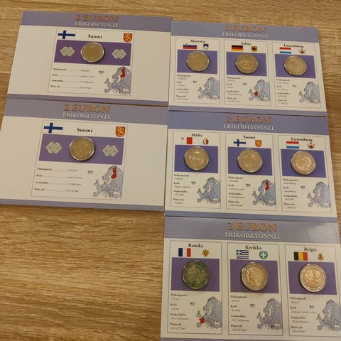 Myydään 2€ kolikkokokoelma. Kolikoita yhteensä 107 kpl, erilaisia 52.