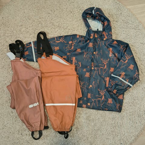 Ciraf sadehousut ja sadetakki. Kappahl laadukkaat sadehousut. Ehjät. Hyvä istuvuus. Takissa irrotettava huppu. Heijastimet