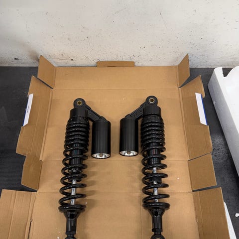Progressive Suspension takaiskunvaimentimet, oli mulla 2007 Dynassa. Pituus 12”