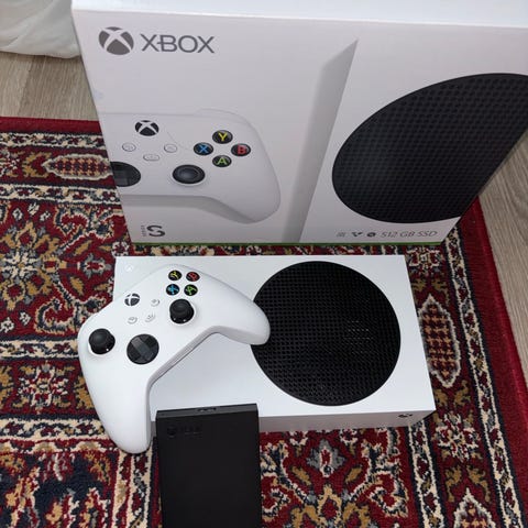 Hyvin toimiva series s konsoli jossa mukana tulee ohjain ja johdot sekä