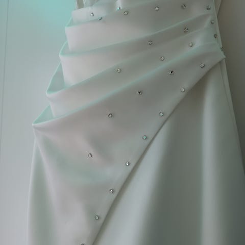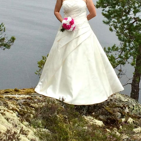 Kaunis ja hyväkuntoinen hääpuku. Takana nyöritys.