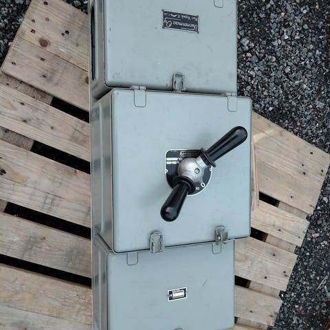 sähkökeskus. Kuvan mukainen kunto/osat paikalla. Sulakkeiden kohdasta puuttuu pelti! Osien toimivuuksille ei takuuta!!