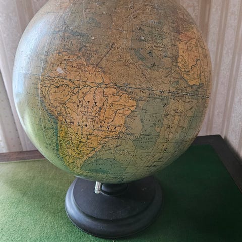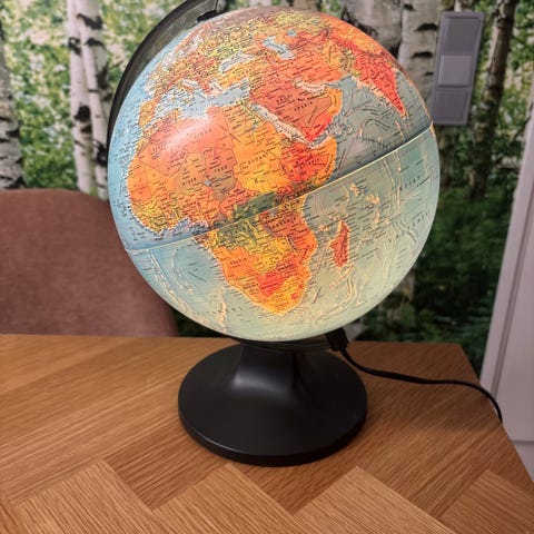 Vintage karttapallo maadoittamattomalla johdolla. Suomenkieliset tekstit. 50-60 luvulta. Nouto onnistuu myös Oripäästä
