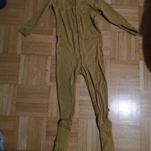 Joha merinovilla haalari, koko 80 cm. Väri beige, kuviollinen kangas. Materiaali 100 % merinovillaa. Unisex-mallinen lasten haalari, jossa pitkät hihat ja lahkeet. Sopii käytettäväksi esimerkiksi alusasuna tai ohuena sisähaalarina.