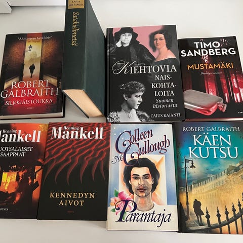 Annetaan kuvassa olevat kirjat. Paljon tekemättömiä tehtäviä. Mukana myös kirja, josta tehty yksi tehtävä. Vain nouto.