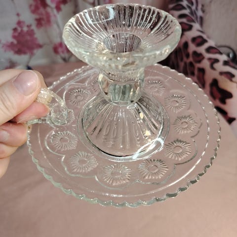 Upea ISO ja vanha kynttilänjalka, hopeoitu ja kristallein koristeltu. Korkeus Noin 26cm ja leveys noin 24cm. Ehjä, kauniisti tummunut, kaikki kristallit tallella ja täysin ehjä. Korkeintaan putsauksen tarpeessa. Mielestäni ikäisekseen siisti.