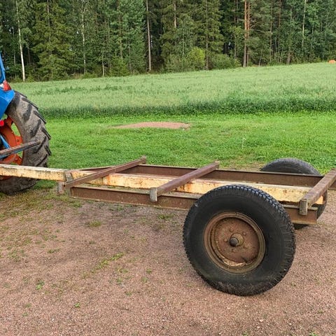 Hyväkuntoinen traktorin peräkärry Vesa 6T. Pohjalevyt uusittu ja laidat kehystetty U-profiililla. Säilytetty sisätiloissa.