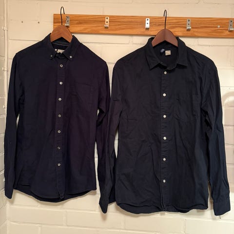 Dobber tummansininen paita S. Kai-kai 53 cm, olka-helma 74 cm. Kunto hyvä, ehjä, siisti. Alkuperäisiä nappeja on korvattu toisilla. 100 % puuvillaa.