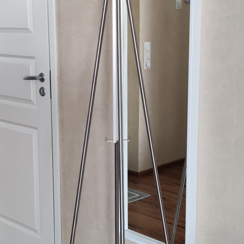 Myydään kaksi käytettyä Ikean Mackapär -sarjan vaatenaulakkoa kenkäsäilytyksellä.