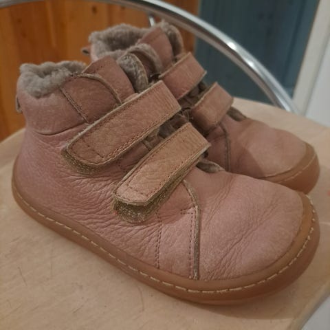 Froddon nahkaiset välikausikengät koossa 27. Nahan pinta kulunut etenkin sisäsyrjiltä. Tikkaukset kuluneet, ei vaikuta käyttöön. Oikean jalan kengästä nahka ratkennut sisäpuolelta, tämä näkyy kuvissa. Yhdellä lapsella ollut kovalla käytöllä, mutta menevät vielä hyvin mielestäni seuraavalle. Ei hajusteita tai eläimiä.