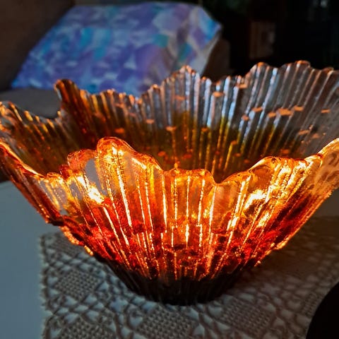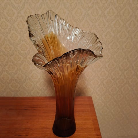 Myydään hyväkuntoinen Revontuli-maljakko. Korkeus 18 cm. Yläreunan halkaisija 30 cm.