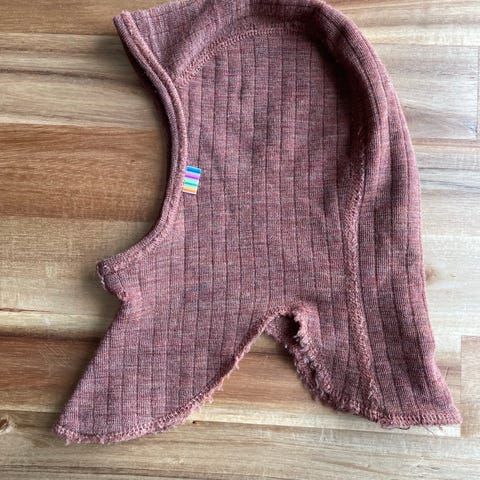 Uudenveroinen Johan merinovillainen kypärämyssy, uutena ostettu yhdellä vauvalla käytetty. Koko toisessa kuvassa.