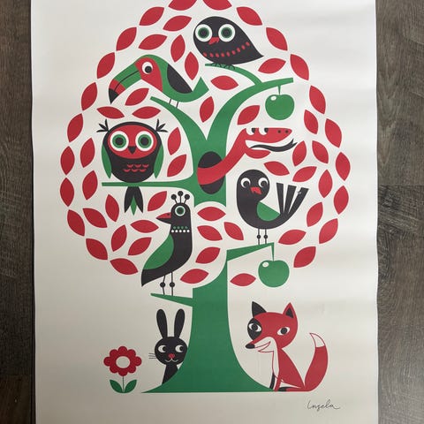 Arabian/Iittalan tehtaanmyymälästä ostettu näyttelyjuliste Birger Kaipiaisen tuotannon näyttelystä. Koko 50cm*70cm. Ollut seinällä kehyksissä ja sen jälkeen säilytetty säilytysputkessa. Siisti kunto. Kaunis viininpunainen väri. Paksua laadukasta paperia.