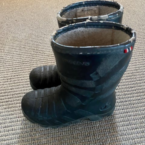 Hyväkuntoiset Viking lasten vuorelliset kumisaappaat, koko 33. Sisämitta noin 22.5 cm. Savuton eläintalous.