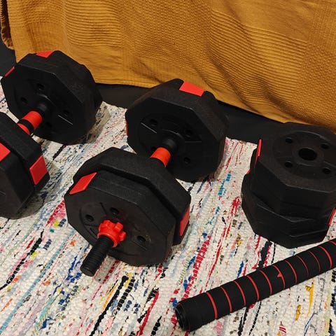 Dumbbell käsipainot kotiharjoitteluun. Paino 1,5 kg per käsipaino. Väri turkoosi. Materiaali muovia. Sopii esimerkiksi lihaskuntoharjoitteluun ja kevyisiin voima- ja kuntoutusliikkeisiin kotona tai salilla.