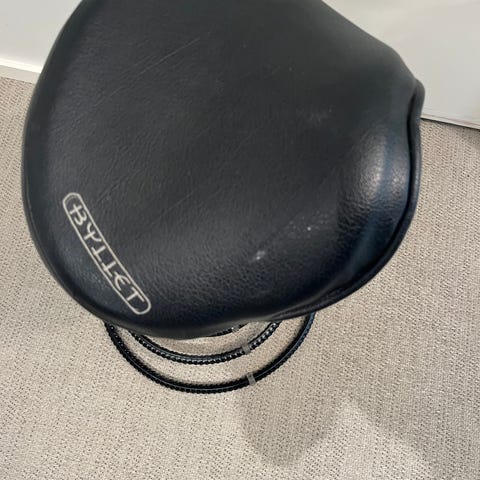 Kunto: Hyvä. Ristikossa vähäistä kulumaa. Isku Tutto satulatuoli. Design Mikko Laakkonen.