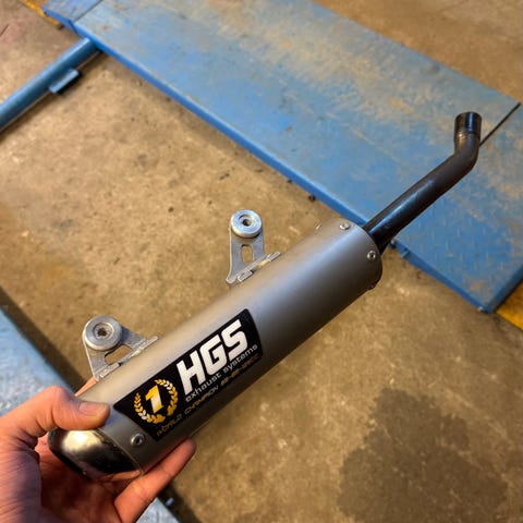 Hieman elämän kolhima remus Husqvarna 701 :siin tai KTM 690. Ollut 2021 vuosimallissa. Äänimaailma ei kolhuista muutu, täydellinen esim enduromalliin jossa voi jälkiä muutenkin tulla.