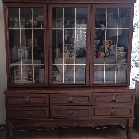 Oikein siisti, valkoinen lasivitriini.