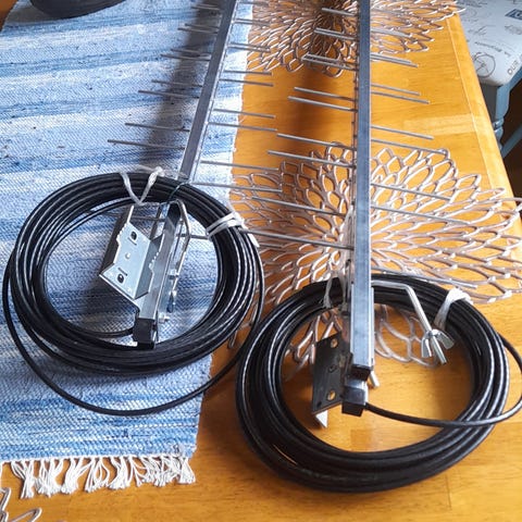 Kuvien mukainen suunta-antenni tarpeettomana. Mimo. UHF(?) liittimet. Eli siis reitittimeen missä kaksi irroitettavaa antennia. Antennikaapelit 2kpl (abt.10-15m) mukaan. Tällä mukavasti potkua nettiliittymään, jos tuntuu ettei oikeen toimi sisällä omilla antennilla.