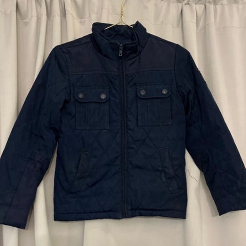 Lindexin tikkitakki koossa 128cm. Takissa napit, ohut vuori sekä sekätaskut. Siistikuntoinen ja käytön jälkeen pesty. Vuoressa pieni reikä sisäpuolella (kuva).