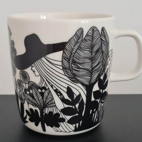 Marimekko mustavalkoinen Puketti muki 2,5dl. Loppupeleissä ei ole paljoa käytössä ollut, mutta sisälle on tullut pieni tummentumajälki reunaan. Katso kuvat! Ei siis ole mitenkään rikki/säröinen eikä sormella tunnu pinta miltään, on vain ihan pieni tummentuma. Muuten päältä päin tosi siisti ja hyväkuntoinen. Sisällä tumma kohta vain reunassa. Se ei meinaa kunnolla edes näkyä, mutta tietyssä valossa syynätessä osuu silmään. Täysin käyttökelpoinen kuitenkin, ei haittaa käyttöä mitenkään.😊