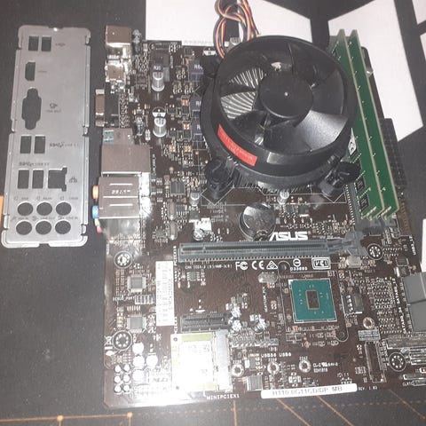 Tästä ekan koneen rakentelijalle helppo aloitussetti kevyeen 1080p pelailuun. Lisää kotelo, kiintolevy, poweri ja käyttöjärjestelmä niin pääset halvalla pelaamaan. Käyttikseksi sopii esimerkiksi Linux Bazzite tai perinteisempi windows. Piitahnat vaihdettu prosessoriin. Vikassa kuvassa tällä kokoonpanolla tehty 3DMark time spy testi (pisteet 3896). Irrotettu toimivana osapäivitysten yhteydessä vanhasta koneesta.