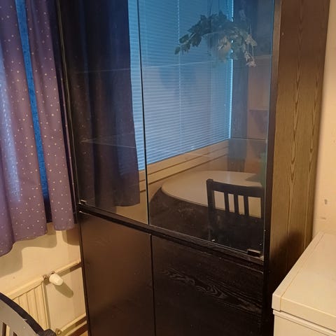 Myydään nopeimmalle ostajalle Liatorpin vitriinikaappi muuton tieltä. Hyvässä kunnossa.