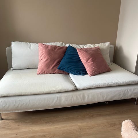 Myynnissä erittäin suuren suosion saavuttanut Ikean Söderhamn sarjan 2 x 1:n istuttava osa. Molempien osien rungot ovat ehjät. Molempiin osiin on meidän toimesta vaihdettu täysin uudet juuri Ikeasta haetut päälliset värissä: Hillared beige. Kyseinen päällinen on valmistettu puuvillasta ja polyesteristä, ja siihen on lisätty viskoosia ja pellavaa. Kestävässä päällisessä on selkeä rakenne, mutta se on myös pehmeä ja mukava. Ryhmän paketti hinta: 379€ tai 199€ / kpl.