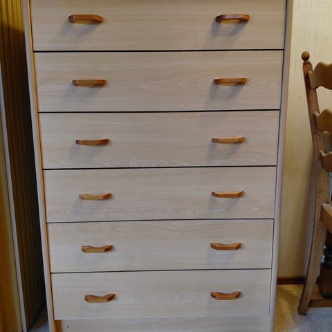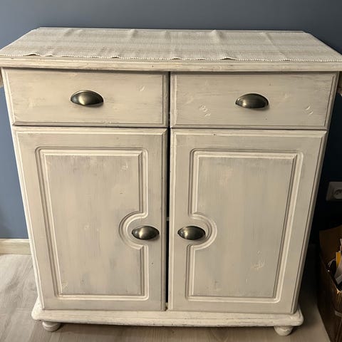 Hyvä kuntoinen lipasto mutta käytön jälkiä näkyy ovessa ja lipaston päällä.