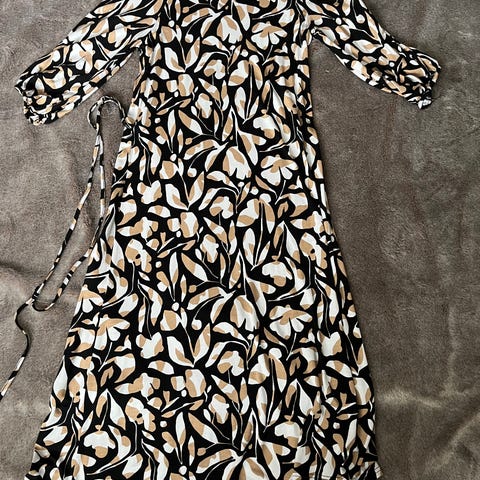 Kaunis kirsikankukkakuvioinen Nanson trikootunika, kokoa 36. Sivutaskut, paitapuserotyyppinen napitus, nauha vyötäröllä. Erittäin siisti, vähän käytetty.