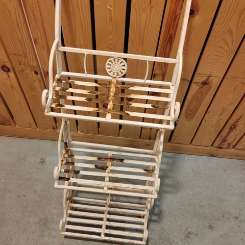 Myynnissä Puinen kukkateline, jonka mitat koottuna ovat noin 39 x 73,5 x 41,6 cm (L x K x S). Telineessä on kolme tasoa kukille, yrteille tai köynnöskasveille. Hyllyissä on reunat, ja yläosassa on liitutaulu, johon voi merkitä kasvien nimiä
