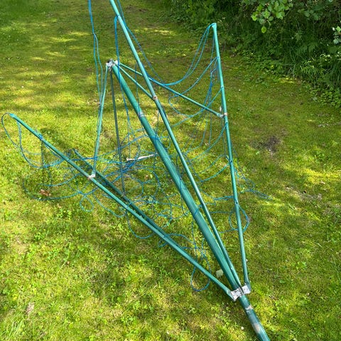 Pyykkiteline, ostettu muistaakseni Ikeasta, mutta en löytänyt enää heidän valikoimasta. Telineessä kolme vaakasuuntaista kuivaustasoa.. Soveltuu taitettavaksi säilytystä varten, kun sitä ei käytetä. Kulumaa siellä täällä ja käytön jälkiä. Toimii kuitenkin edelleen.