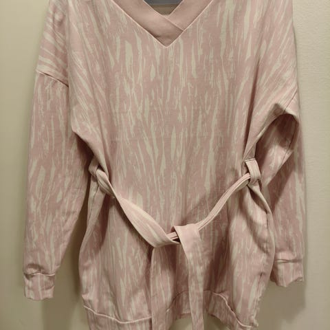 NOSHin raidallinen trikoopaita. Elastaania 5 %. Hyvä käytetty kunto. Ihana leikkaus pussihihoilla, itsellä ei kuitenkaan mahan kohdalta imarrellut vartaloa.
