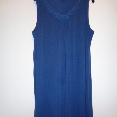 100% viskoosia. Edessä kuvan mukainen pitsi. Väljä, mukavasti laskeutuva malli. Muutaman kerran juhlissa käytetty.
