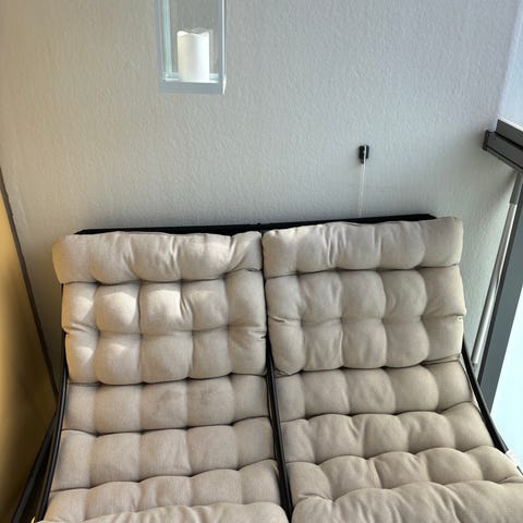 Myydään muuton tieltä pois terassi/parveke sohvamoduuli (ovh 300€) ja pöytä ulkokäyttöön. Sohvassa on kaksi istuin- ja kaksi selkätyynyä harmaalla kangas verhoilulla. Runko on metallia ja matala rakenne sopii parvekkeelle tai terassille. Voidaan peilikääntää. L153 x K72 x S84 cm