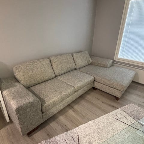 Löhösohvien aatelinen etsii uutta kotia. Lapsiperheestä,löytyy tahroja. Päälliset saa pestyä, yhdessä istuintyynyssä vetoketju rikki.