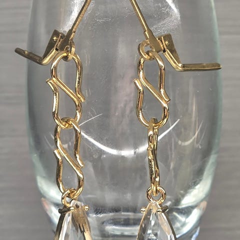 Uudet käsintehdyt korvakorut. Kullatut, kristallia. Pituus lukon kanssa - 5 cm.