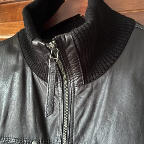 Vielä hyväkuntoinen, vähän vain pientä kulumaa,musta nahkatakki, Coca-Cola harmaa/valkoisella logolla, rintatasku,sivutaskut on, voin kyllä lähettää, mutta en toridiilillä