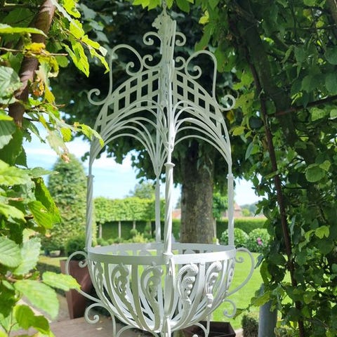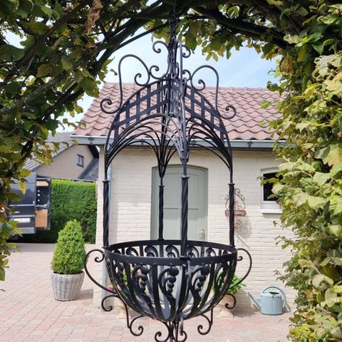 Tämä on upea taottua rautaa oleva kukkakorin / kasvikori. Erittäin kaunis muotoilu kauniin mustassa värissä. Kaunis kappale roikkumaan. Välimerellinen sisustus. Tämän korun mitat ovat seuraavat (johtoineen) +/-:Korkeus: 98 cmLeveys: 32 cmKaikki tuotteemme pakataan huolellisesti ja toimitetaan vakuutettuna.