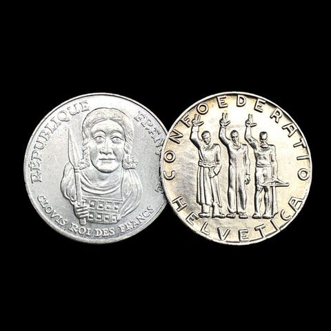 Maailman kolikotRanska- 3 hopeaa (1x 1 franki + 2x 5 frankkia) kolikkoa (28,90 g)1888/1960 5 Frankit - 1961/19631960-1969Kolikot › Vakiosirikkäykäyttöön tarkoitetut kolikot: 5 frankkia SemeuseHopea (.835) • 12 g • ⌀ 29 mmKM# 926, Gad 1789# 770, Franc 2014# 340, Schön# 235, N# 679 1 Franki - 18881871-1895Kolikot › Vakiosirikkäykäyttöön tarkoitetut kolikotHopea (.835) • 5 g • ⌀ 23 mmFranc 2014# 216, Gad 1789# 465, KM# 822, N# 1173---------------------------------------ToimitusilmoitusOle hyvä ja huomaa, ettemme tarjoa yhdistettyä toimitusta. Jokainen ostettu kohde lähetetään erikseen, ja kullekin tilaukselle sovelletaan omat toimituskulut.Tämä käytäntö mahdollistaa huolellisen käsittelyn sekä nopeamman, turvallisen toimituksen jokaiselle kappaleelle.Arvostamme ymmärrystäsi ja olemme käytettävissäsi mahdollisiin lisäkysymyksiin.