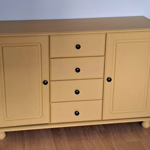 Laatikosto on ollut toisen laatikkokuution alla, joten päälliosaan on tullut reunoihin raapuja. Muuten hyväkuntoinen, pieniä käytön jälkiä.