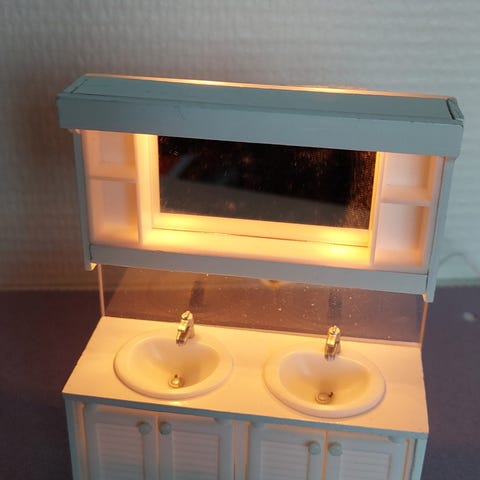Halutessasi voit lisätä valaistuksen allaskaappiin, jos sinulla on sähköistetty nukkekoti.