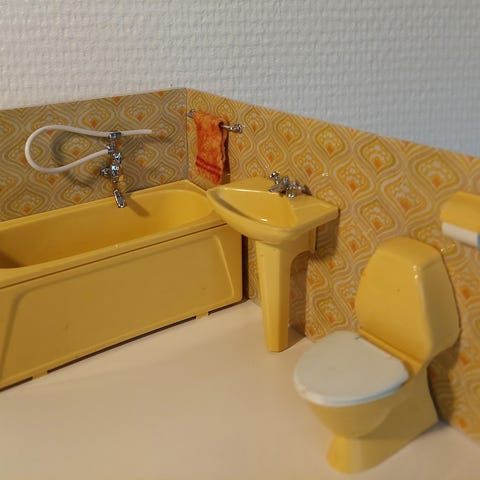 Lundby Avokado-sarjan vintage kylpyhuone nukkekotiin.