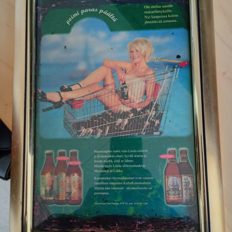 Hieno vaikka kotibaarin seinälle. Teksti Kultaa muistoissa ja sen alla jonkun tekemä kirjoitus tussilla.