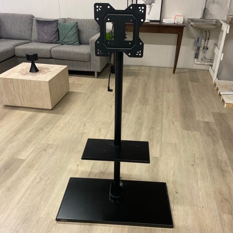 Metallinen tv-teline, jossa on pyörät helpottamaan siirtelyä. Vaalea värisävy sopii monenlaisiin sisustuksiin. Telineessä on alataso esimerkiksi mediatoistimelle tai muille laitteille. Soveltuu tasojalustaa tarvitsevalle televisiolle olohuoneeseen tai muuhun oleskelutilaan. Sopii 32-65 tuumaiselle televisiolle. Lukittavat pyörät leveys 100, korkeus 116, syvyys 55