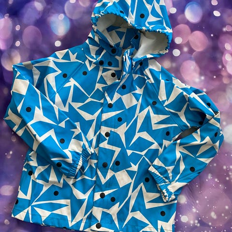 Vähällä käytöllä ollut Lassie sadetakki sinivalkoinen.