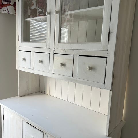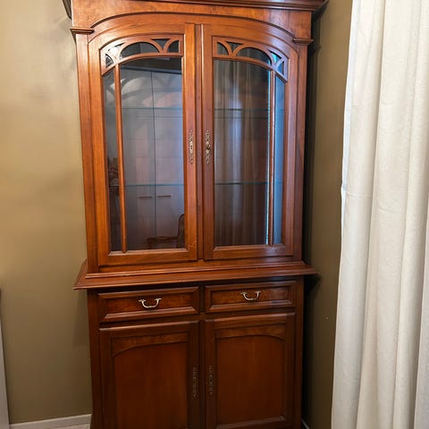 Täyspuinen ainakin 30v vanha vitriinikaappi, joka hyvässä kunnossa ja jossa puinen runko ja kaksi lasiovea. Kaapissa on useita lasihyllyjä astioiden, lasien tai koriste-esineiden säilytykseen ja esillepanoon. Alhaalla on 2 leveää laatikkoa lisäsäilytystilaa varten. Sopii olohuoneeseen, ruokailutilaan tai keittiöön. Avain katkennut, mutta uudella avaimella myös lukko toimiva.