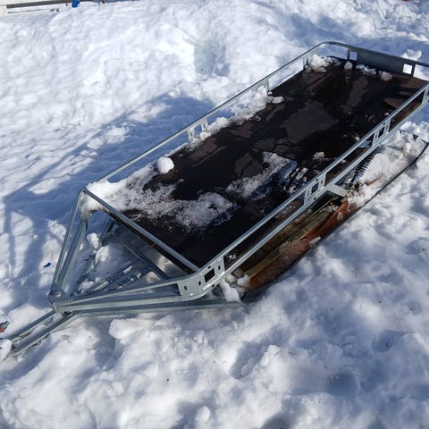 Moottorikelkan tavarareki metallirungolla