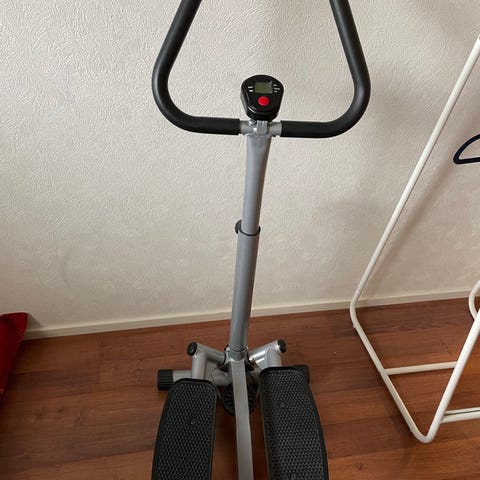 Kuntolaite stepperi, jossa on käsikahvat ja keskellä harjoitusnäyttö. Laitteessa on kaksi erillistä askellevyä jaloille. Sopii kotiin aerobiseen harjoitteluun ja alavartalon lihasten vahvistamiseen.